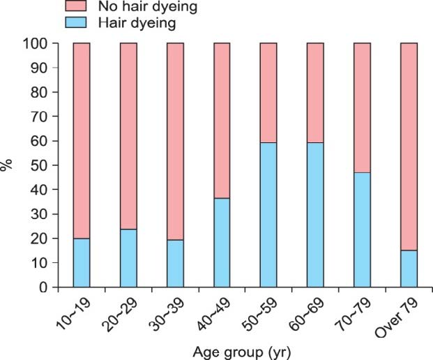 Jo, J. S., Shin, H., Paik, S., Choi, J., Lee, J., Cho, S., & Kwon, O. (2013). The Pattern of Hair Dyeing in Koreans with Gray Hair. https://www.researchgate.net/figure/Proportions-of-subjects-with-dyed-hair-by-age-in-each-age-group_fig1_259474294