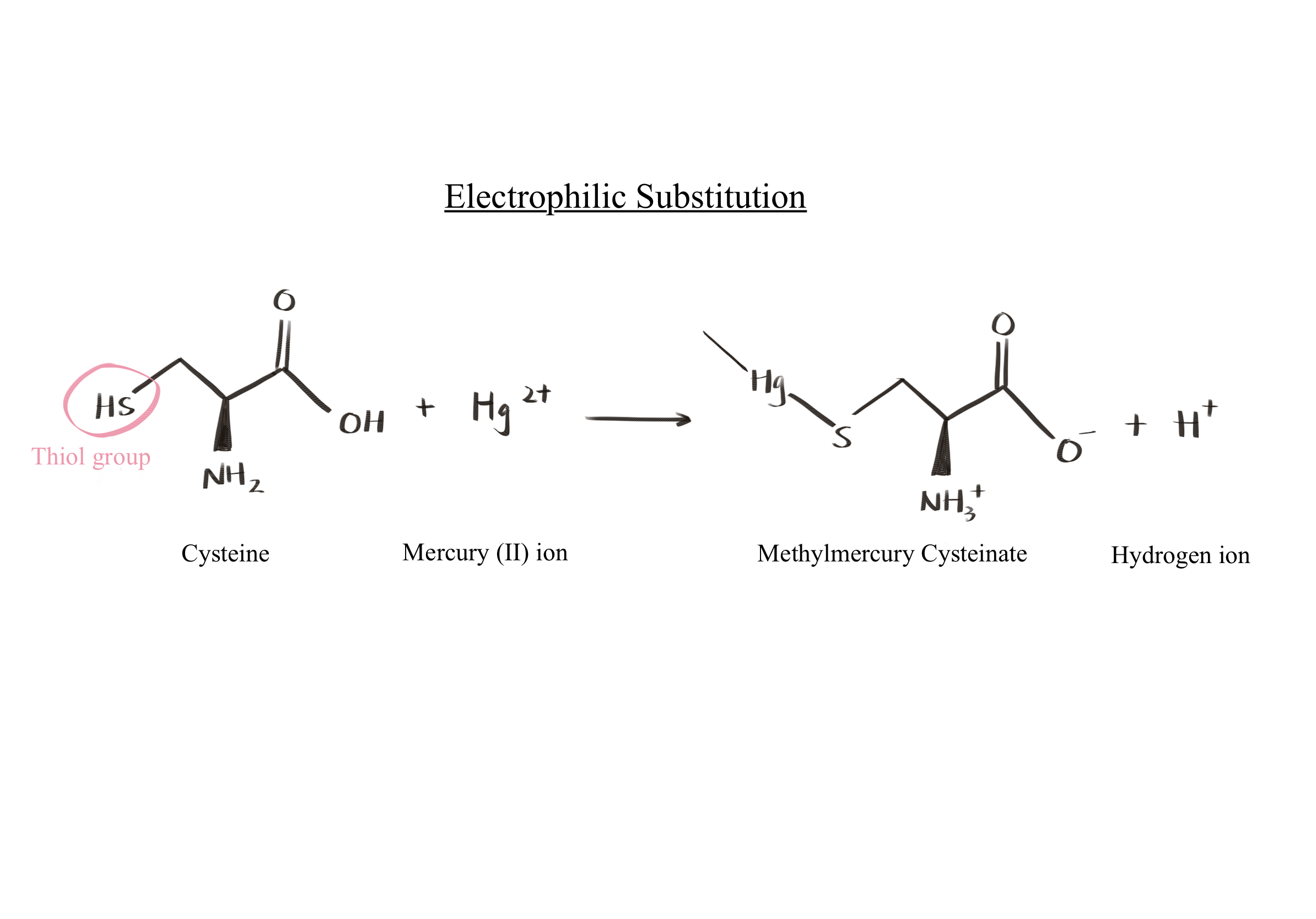 | Figure 2. Electrophilic substitution of mercury at the thiol group of cysteine. |
