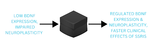 The slow response time of SSRIs in some patients creates the need for accelerating antidepressant effects. Increased BDNF expression may increase neuroplasticity (Yang et al., 2020), and neuroplasticity may speed up the response time to SSRIs. Figure 2 displays that targeting the underlying mechanisms responsible for neuroplasticity and inducing the perceptible effects of SSRIs quicker can potentially reduce patient discouragement and improve treatment reliability.