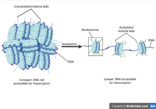 | Figure 3. A Model of the Effect of Histone Acetylation. Created in https://BioRender.com. |