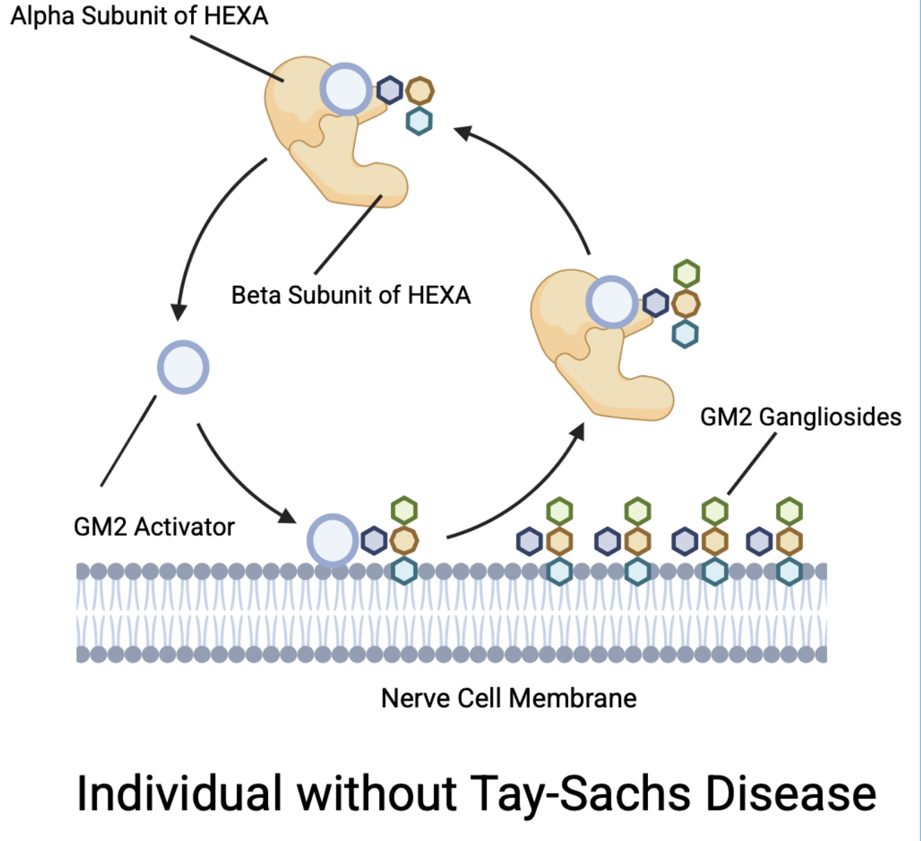 | Figure 1. Production of GM2 Gangliosides via the Alpha Subunit of the HEXA Gene for someone without Tay-Sachs. |